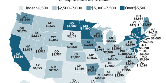 Tax collections of 10717 per capita in DC. The five states with the highest tax collections per capita are New York 9073 Connecticut 7638.
